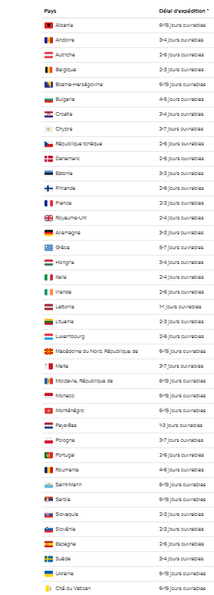 Délais de Livraison *